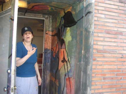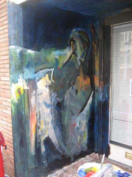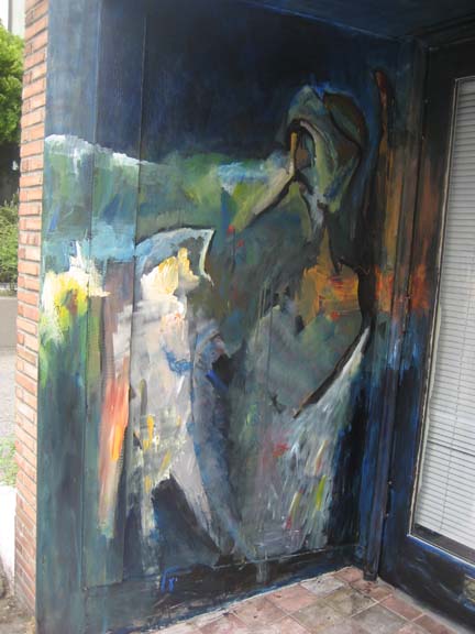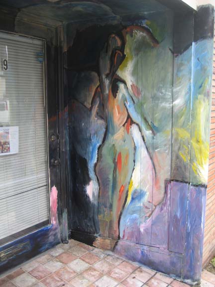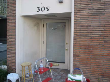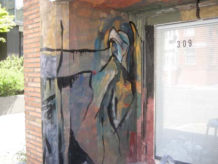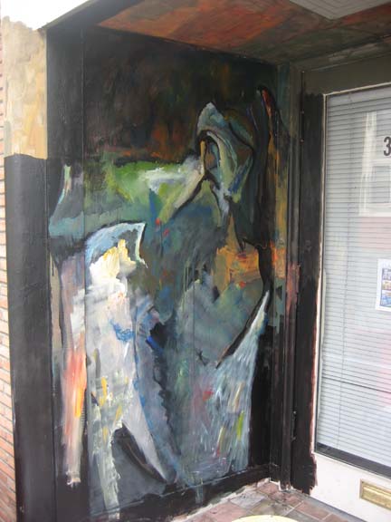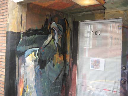 Gallery 309 entrance is about to be formed. I was asked to paint on the entrance for the art exhibit opening, and the opening of the new gallery in Belltown, Seattle, Gallery 309 . (Please click on images to enlarge.)